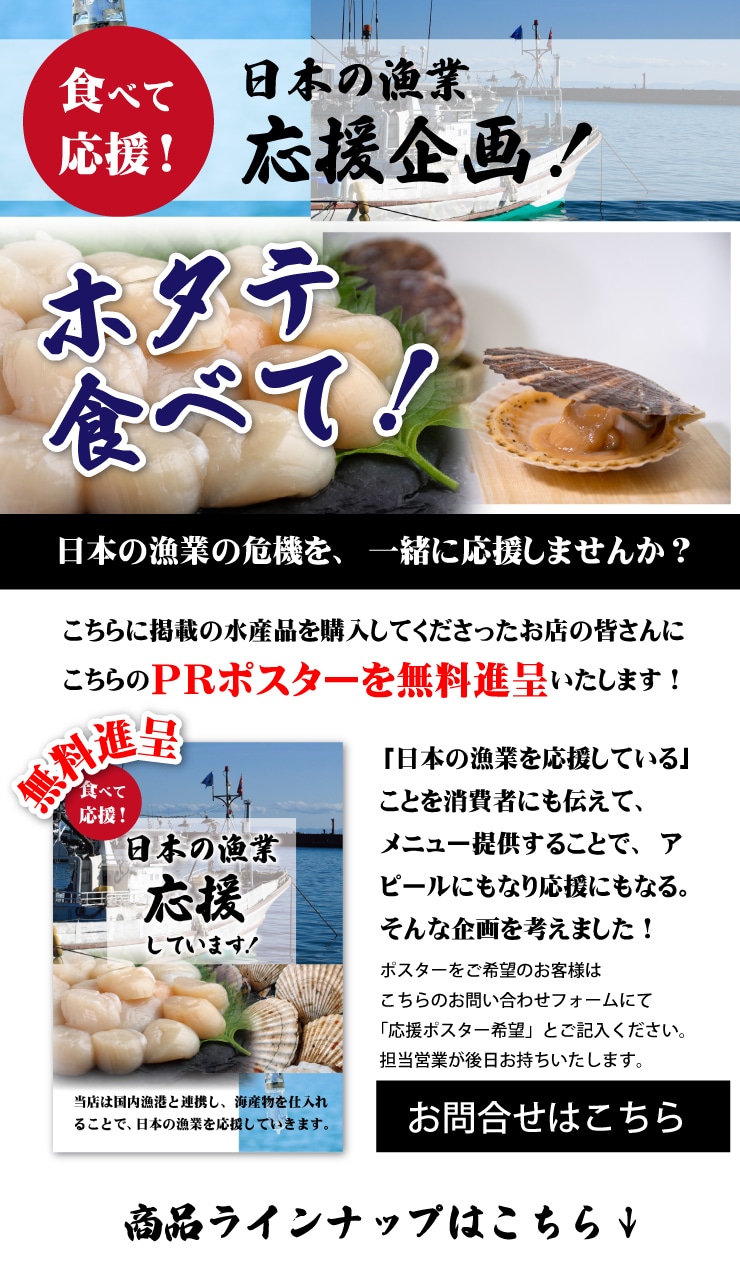 北海道産の殻付帆立を片貝にした生冷凍品です