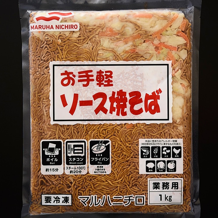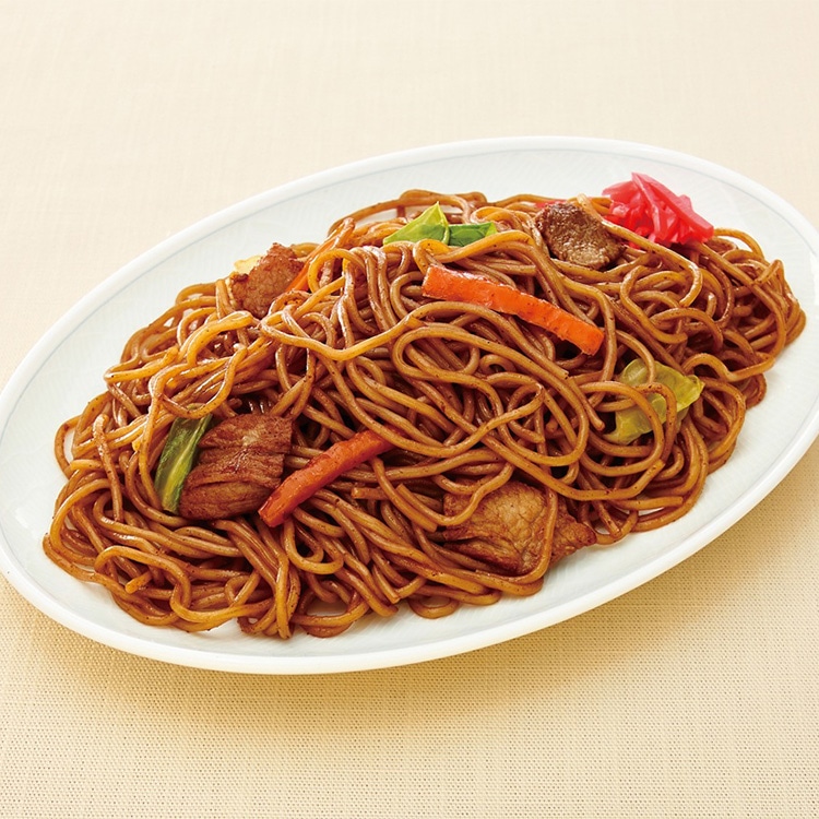 マルハニチロの自家製麺を使用したブラックペッパー、ガーリックパウダーが特徴のソース焼そばです