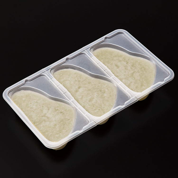 UDF区分:舌でつぶせる区分のムース商品です。1食40Gの個食タイプで、たんぱく質100Gあたり21G以上配合しています。