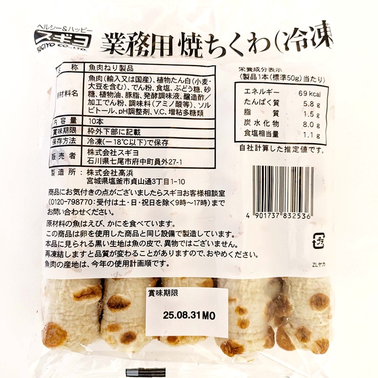 | 商品名 | 業務用焼きちくわ(冷凍) 50G 10食入 |