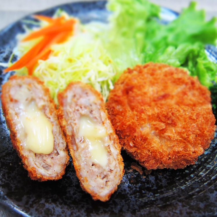 国産鶏肉を使用し、チーズソースを中に閉じ込めた、二層タイプのメンチです。冷めても固まりにくいチーズソースが特徴です。