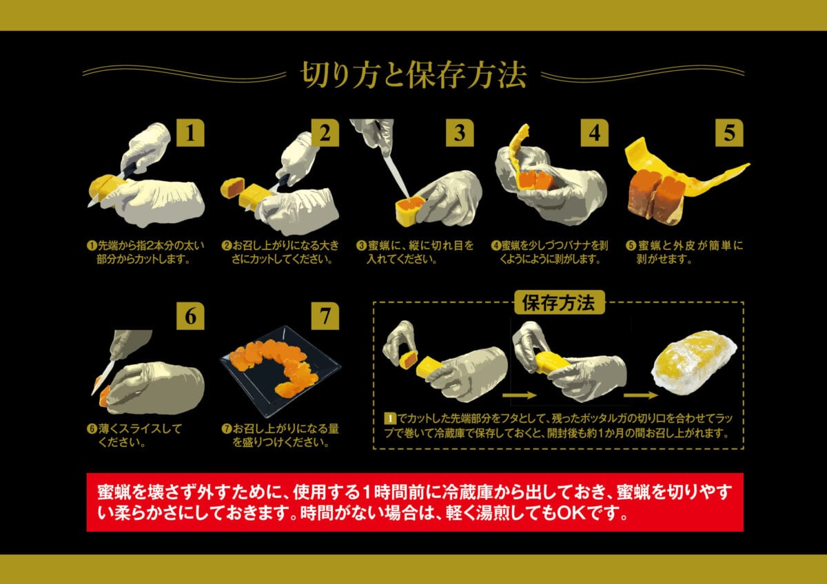 エーゲ海を中心とした地中海で捕れたボラの卵だけを使った大変フレッシュなカラスミで、ウニを思わせるような深い味わいはギリシャのキャビアとも呼ばれています。ドライスプマンテやシャルドネなどミネラル感のある白ワインと相性が抜群です。外側の黄色い蜜蝋を剥がしてからご使用ください。