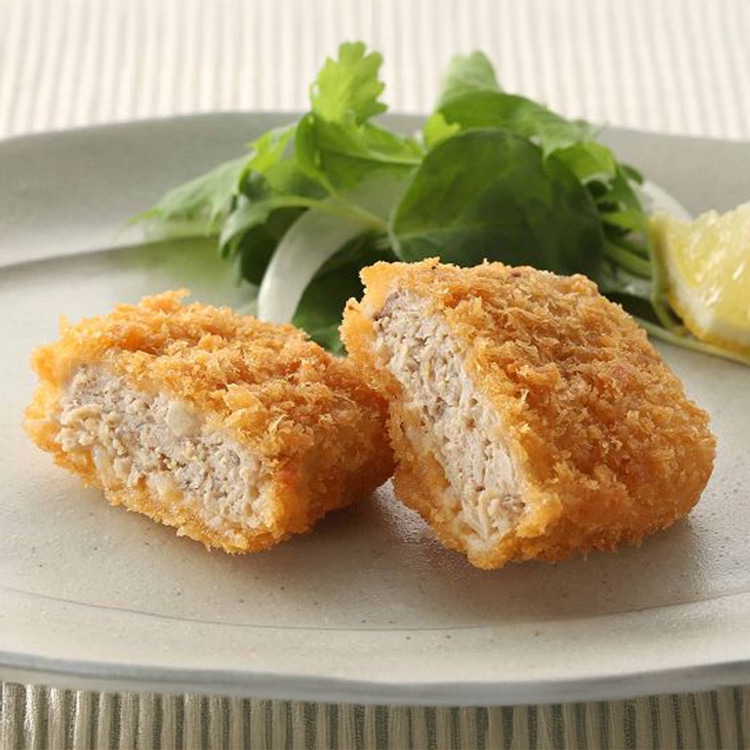 「気仙沼産のカツオ」に丸大豆醤油・砂糖で下味を付け、細かく刻んだタマネギをバランス良く配合しました。生姜の香りを効かせ、カツオの旨味を引き立てました。