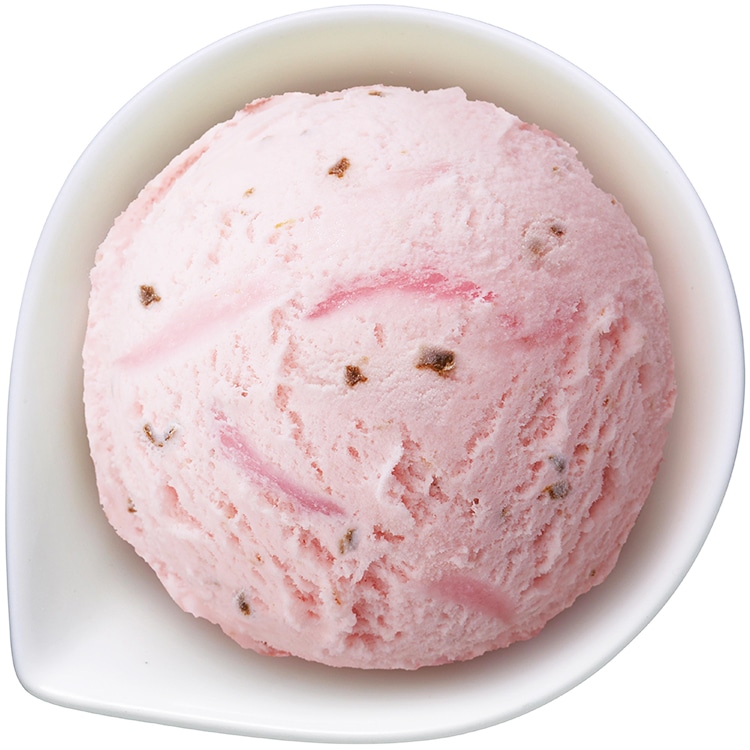 塩漬けした桜葉入りの桜アイスに、桜ソースを加えました。桜の風味や色合いをしっかり楽しめる、桜づくしの仕立てです。アイスもソースも桜色に統一したピンク色の可愛らしい見た目で、単品でそのままでもメニュー素材でも、幅広くご活用いただけます。