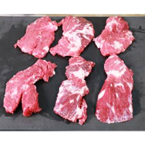 牛の骨盤周りにあるメガネという部位で、切り出した形が眼鏡のフレームに似ていることから名付けられました。ハラミのような柔らかさと赤身肉特有の旨味を兼ね備えた商材です。解凍後、軟骨やすじを確認後、裏面の薄皮に切り込みを入れて、お好みの大きさにカットし加熱してお召し上がりください。