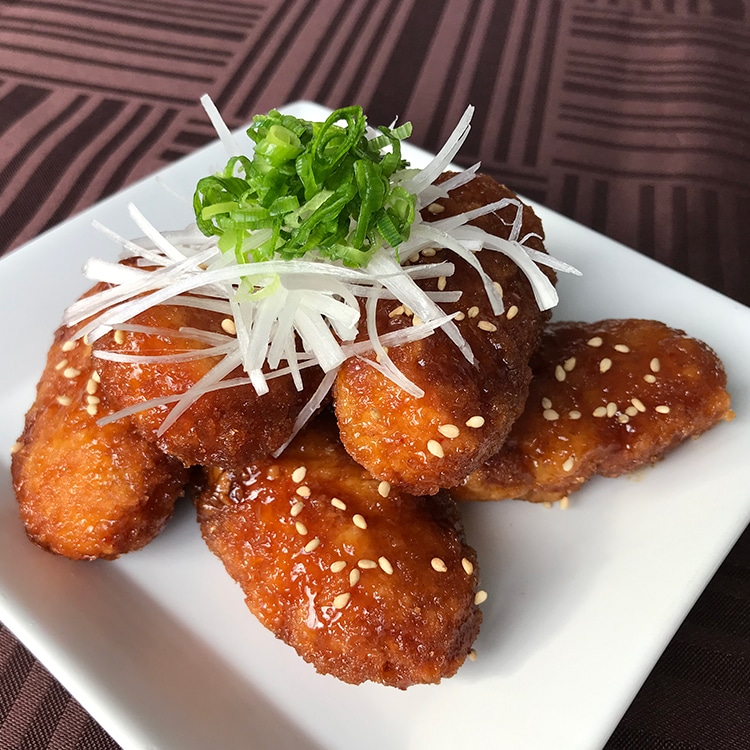 おつまみやお弁当のおかずにピッタリな甘辛ダレのささみフライです。自然解凍やレンジで調理できます。