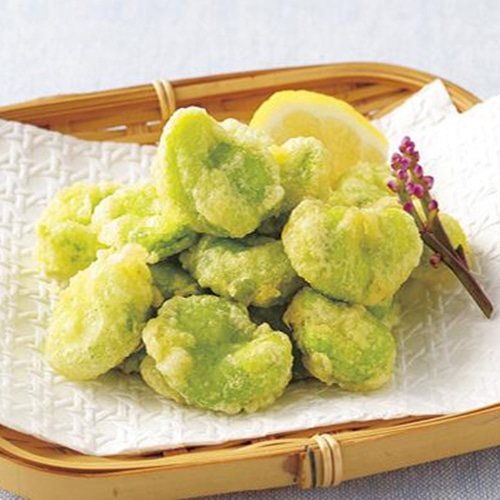 塩茹でしたそらまめの皮をむいて凍結しました。天ぷら、かき揚げ、炒め物、スープ、炊き込みご飯等、いろいろなメニューにご使用いただけます。旬の季節感を演出するお料理素材です。中国産です。