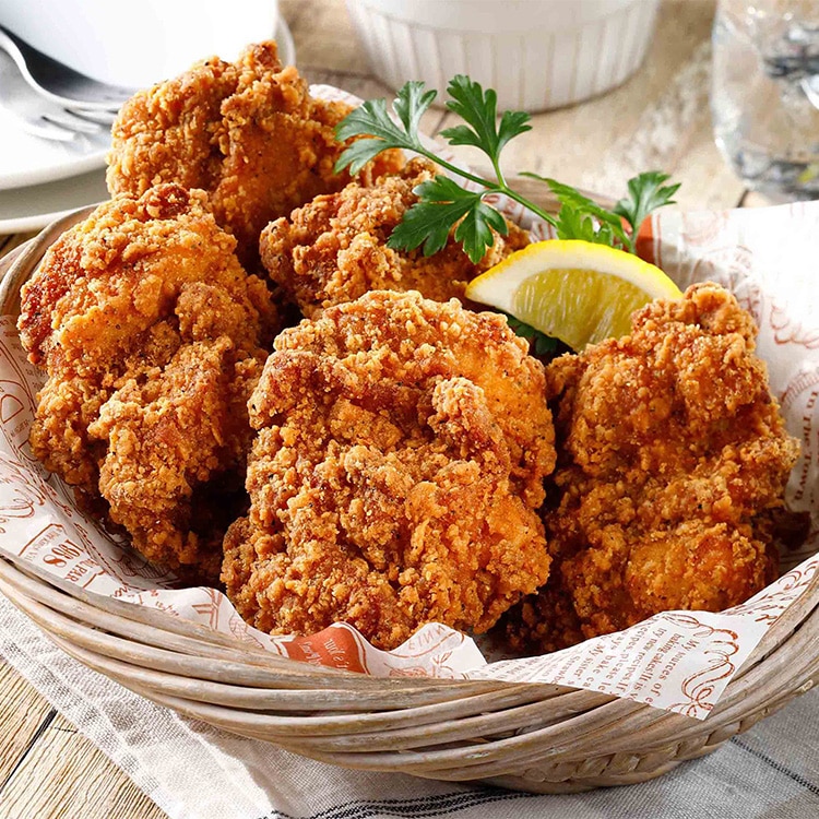 若鶏のもも肉を使用した骨なしのフライドチキンです
