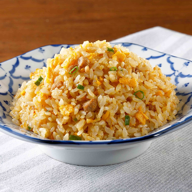炒めとあおりを繰り返す三段階炒め製法で、香ばしい炒め感のあるパラッとしたチャーハンです