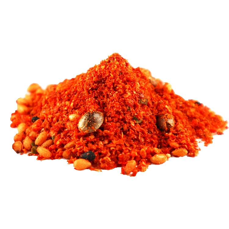 唐辛子を主体に、陳皮、黒ごま、白ごま等をブレンドした風香味の良い七味唐辛子です。程よい辛さとともに香りと風味を足すことで料理がより華やかな味になります。そば、うどん、汁物、焼き魚など様々な料理にお使いいただけます。