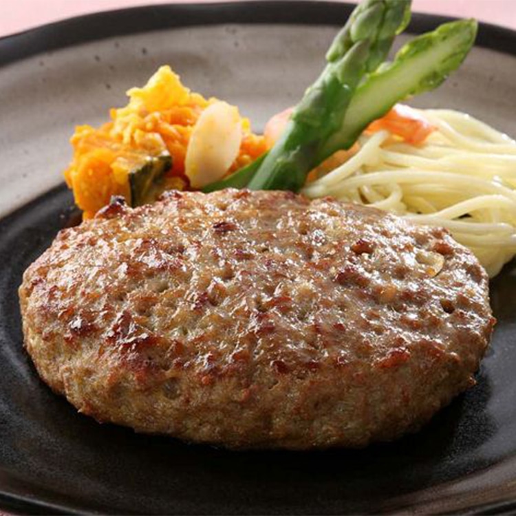 冷めてもジューシーなハンバーグです。柔らかい食感はお弁当からメインのおかずまで幅広くご使用いただけます。調理してからお召し上がりください。