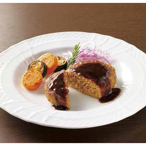 低温と高温の蒸気を組み合わせたマルチスチーム製法により、ジューシーでほぐれ感の良いハンバーグに仕上げました。ダブルベルトグリルで両面を一気に焼き上げ、旨味をしっかり閉じ込め、ふっくらジューシーな牛肉主体の合挽きハンバーグです。電子レンジ調理でもしっかりした焼き色になります。