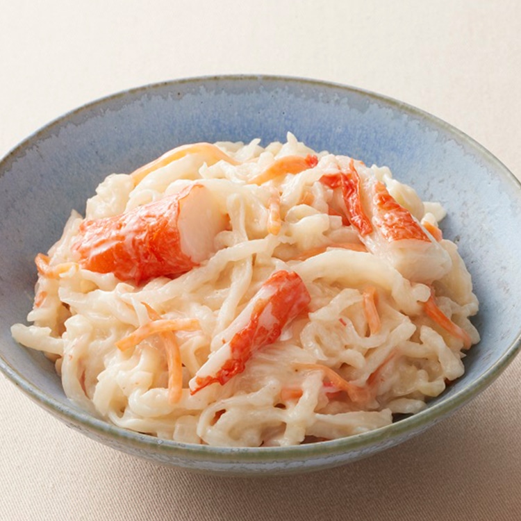 自然解凍で提供可能なカニカマと切り干し大根のサラダです。