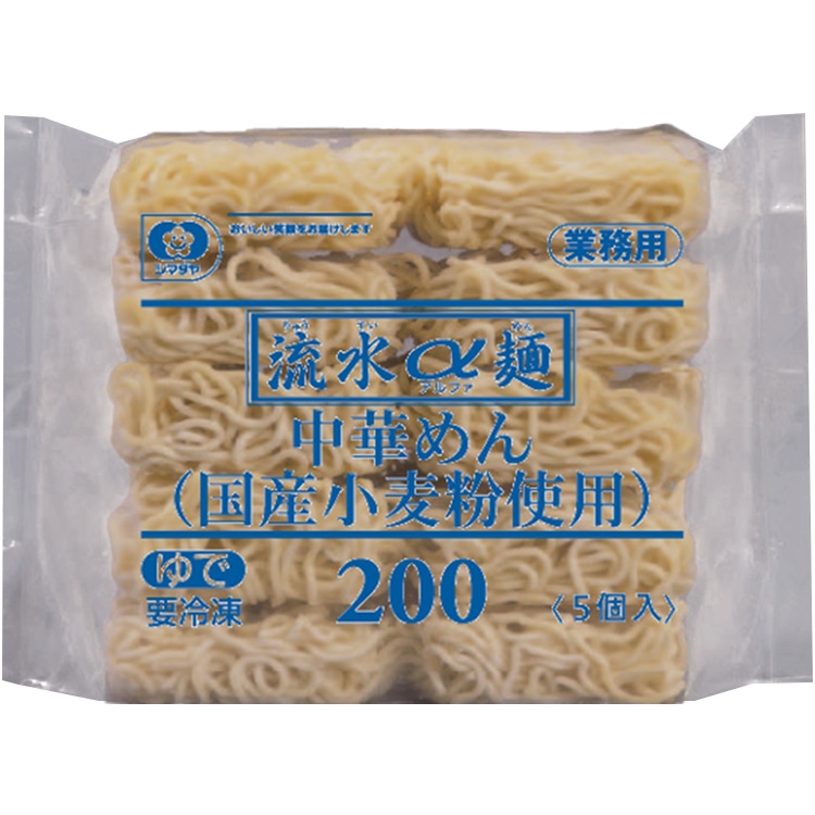 商品名 | 「流水α麺」中華めん(国産小麦粉使用) 200G 5食入 |