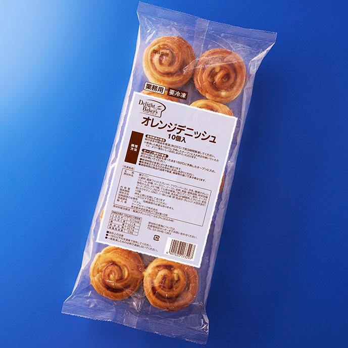 27層に折り込んだデニッシュ生地でオレンジピールとカスタードを巻き込み香りよく焼き上げました。立体感のある形状と焼きたてのようなつや感も魅力です。
