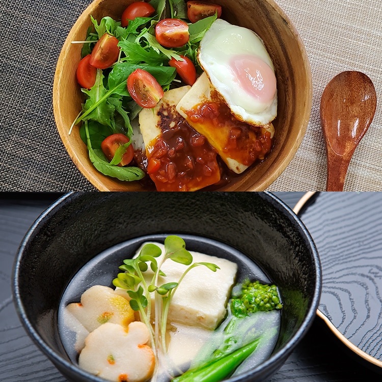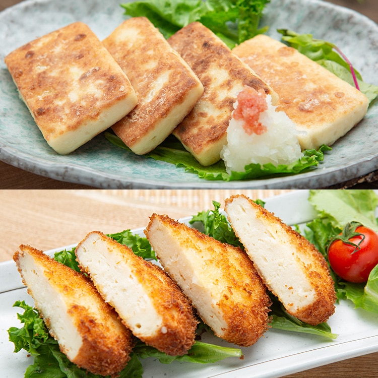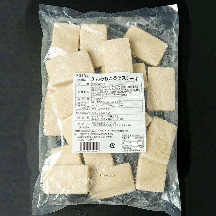豆腐と魚のすり身に長芋とろろを加え、ふんわりした食感のとろろステーキに仕上げました。冷蔵庫、室温解凍はお勧めしません。調理の際に加熱解凍してください。