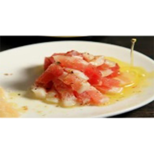 短冊状にカットしたパンチェッタ(生ベーコン)です。そのままおつまみとして、あるいはパスタやピザのトッピングなどにおすすめです。