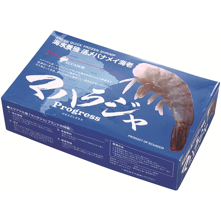 エクアドル産バナメイ無頭海老「マハラジャ」ブランドは海水養殖限定で育てた海老を使いやすいIQFタイプにしました。引き締まった食感と海老の旨味が特長です。