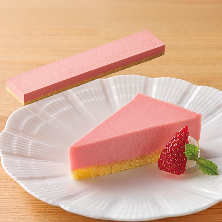 なめらかな食感のいちごムースと、シロップを染み込ませたスポンジを合わせたいちごのケーキです。100Gあたり食物繊維3.4Gで、お酒不使用です。華やかなピンク色は普段のおやつや行事食に最適です。