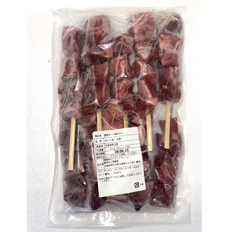 北海道十勝の豊西牛のハツを串焼き用にしました。見た目にもボリュームがあります。