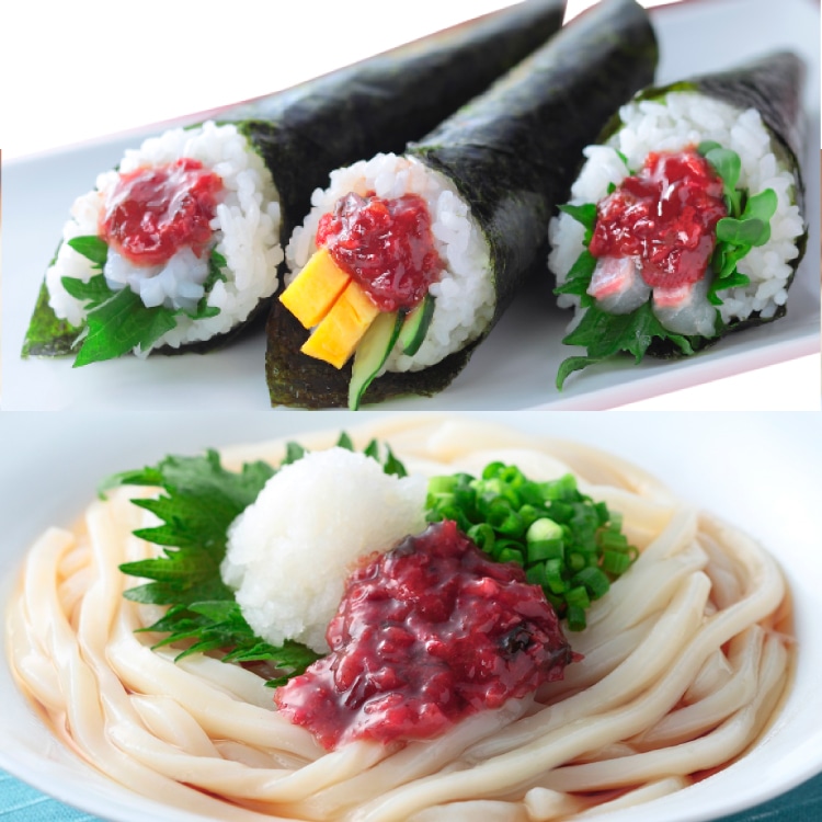 紀州産南高梅干しのペーストに国産鰹節と紫蘇を和えた梅干しの加工品です。梅干しより食べやすく、美味しく調味されております。おにぎり、お茶漬けはもちろん酒の肴、冷奴の薬味や、洋風のカナッペやサンドイッチなど、焼鳥やチキンソテーのソース等にもよく合います。