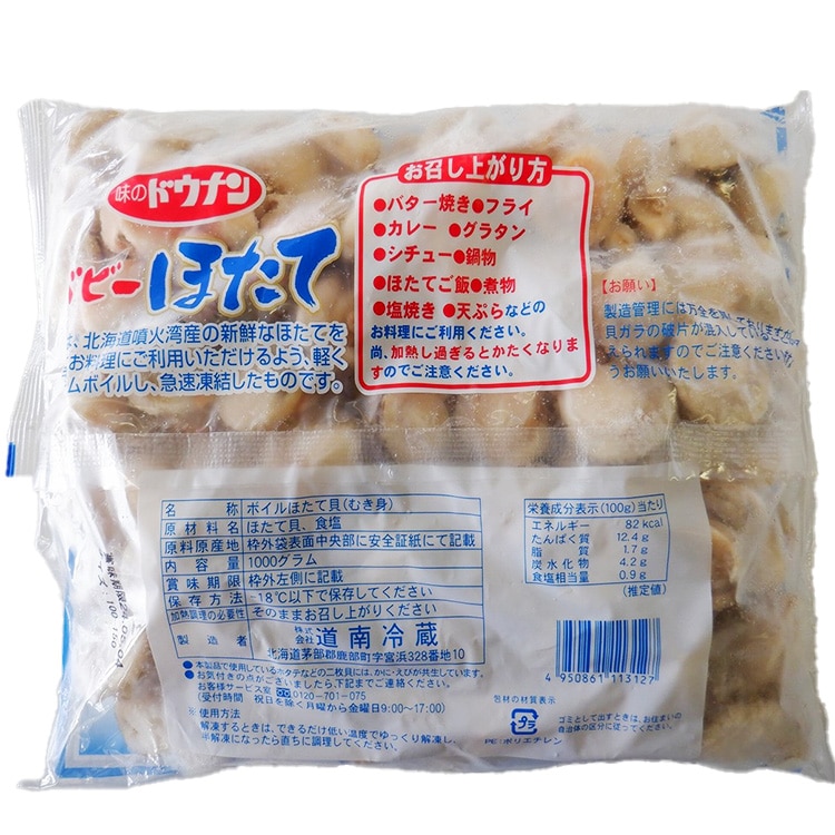 北海道噴火湾産の新鮮なほたてを手軽にお料理にお使いいただけるよう、軽くスチームボイルし、急速凍結したものです。魚種名はベビーほたて、漁獲水域は噴火湾、漁獲期間は4月〜7月です。