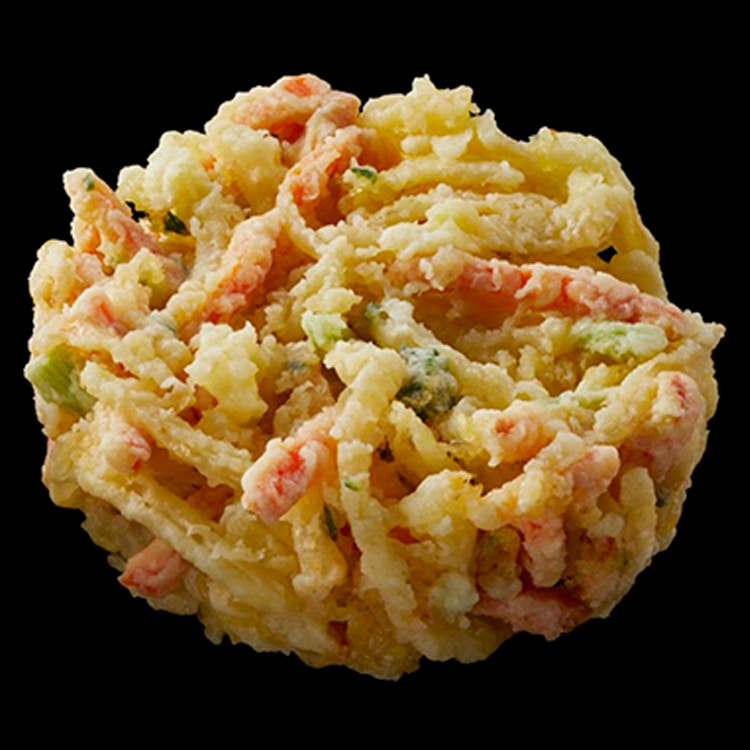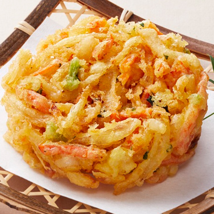 具材にたまねぎ、にんじん、小松菜を使用し、ひとつひとつ手揚げをすることで、中までしっかり均質に火入れをしています。時間がたってもサクサクとした触感です。