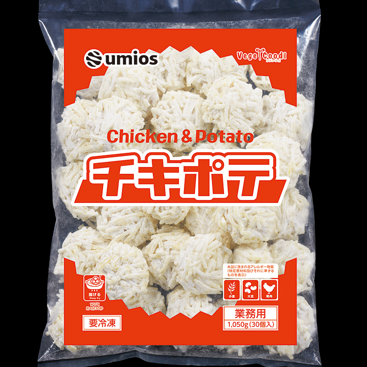 鶏肉と鶏皮を使用した中具と、じゃがいもを細切りにしたポテト衣を組み合わせました。おやつとしても、お酒のおつまみとしてもお楽しみいただけます。加熱してお召し上がりください。