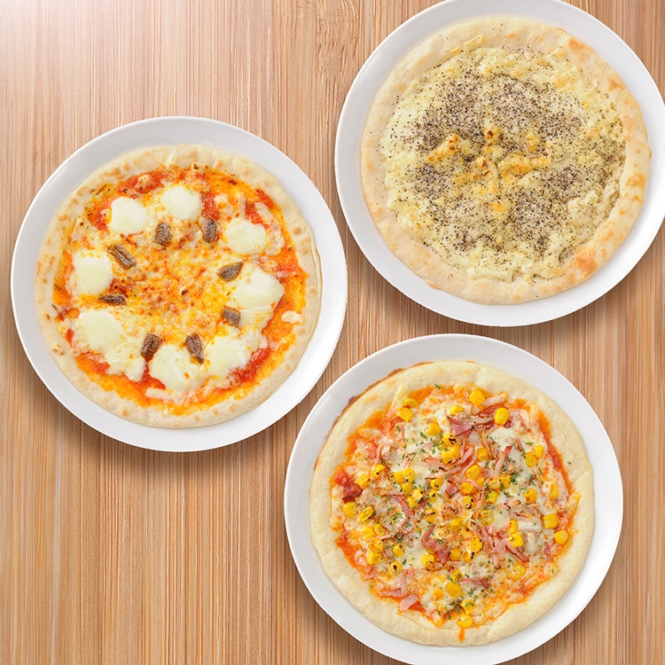 イタリア北部地方の薄くクリスピーなクラストを再現して、パリッとした食感が楽しめます。シンプルなトッピングがよく合います。冷凍状態のままクラストにピッツァソースをぬり、チーズ・お好みの具材をトッピングし焼き上げてください。チーズに気泡ができ、ほどよく溶ければ出来上がりです。
