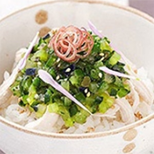 国産のきゅうりとなすに大葉、みょうが、ねぎ、細切り昆布を和えた、山形を代表する味わいです。シャキシャキとした食感をお楽しみいただけます。冷奴などのおつまみやご飯、そばやパスタなどの麺類と様々なメニュー作りにお役立てください。流水または冷蔵庫で解凍しそのままお召し上がりいただけます。