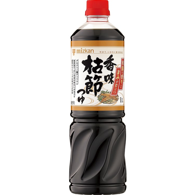 老舗のそば屋で使用されることが多い「枯節」を節原料として使用し、ミツカンの独自製法「熟かえし製法(R)」でまろやかなまとまりある味わいを、「香味三段製法」でだしの香り、旨みを際立たせた、こだわりのつゆです。グルタミン酸ナトリウム無添加でだし本来の味わいが活きる濃厚かつシャープな味わいが特徴です。